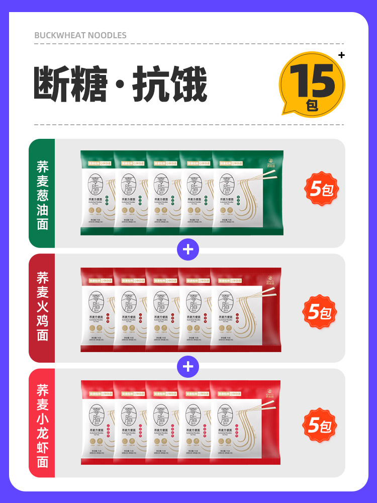 首页 / 粮油米面 / 调味品 / 西奥图荞麦面3味共15袋(葱油5+火鸡5+小龙虾5)0脂肪带调料包全麦粗粮泡即食免煮葱油拌面减非油炸
